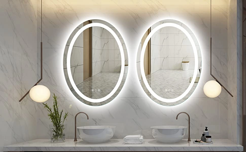 آینه لمسی ( آینه تاچ) ضد بخار بک لایت و رینگ لایت بیضی 60 * 80 سانتیمتر سری sm مناسب روشویی سرویس بهداشتی و آینه حمام و اینه کنسول