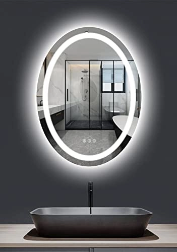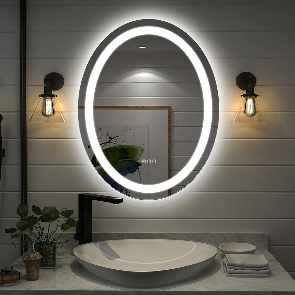 آینه لمسی (تاچ) ضد بخار آینه بک لایت و رینگ لایت بیضی 50 * 70 سانتیمتر مناسب روشویی سرویس بهداشتی و اینه کنسول سری sm
